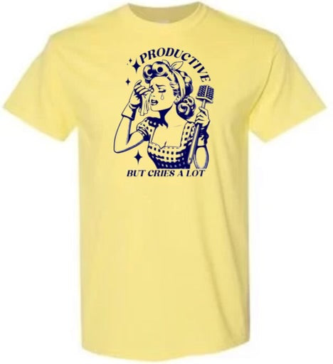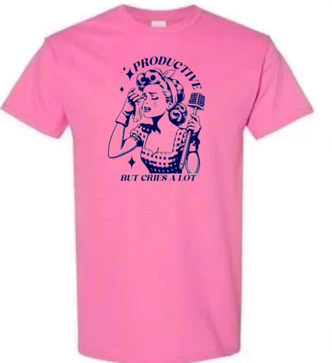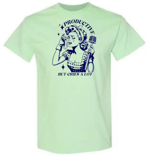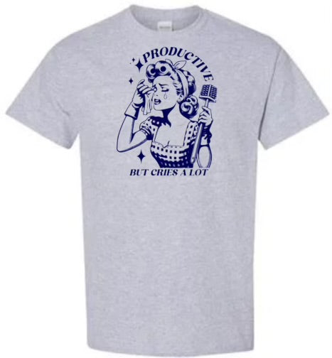 Introducing our newest unisex apparel, the 'Productive but cries a lot' - proudly printed in the USA. This unique piece is perfect for those who balance efficiency with emotionality.