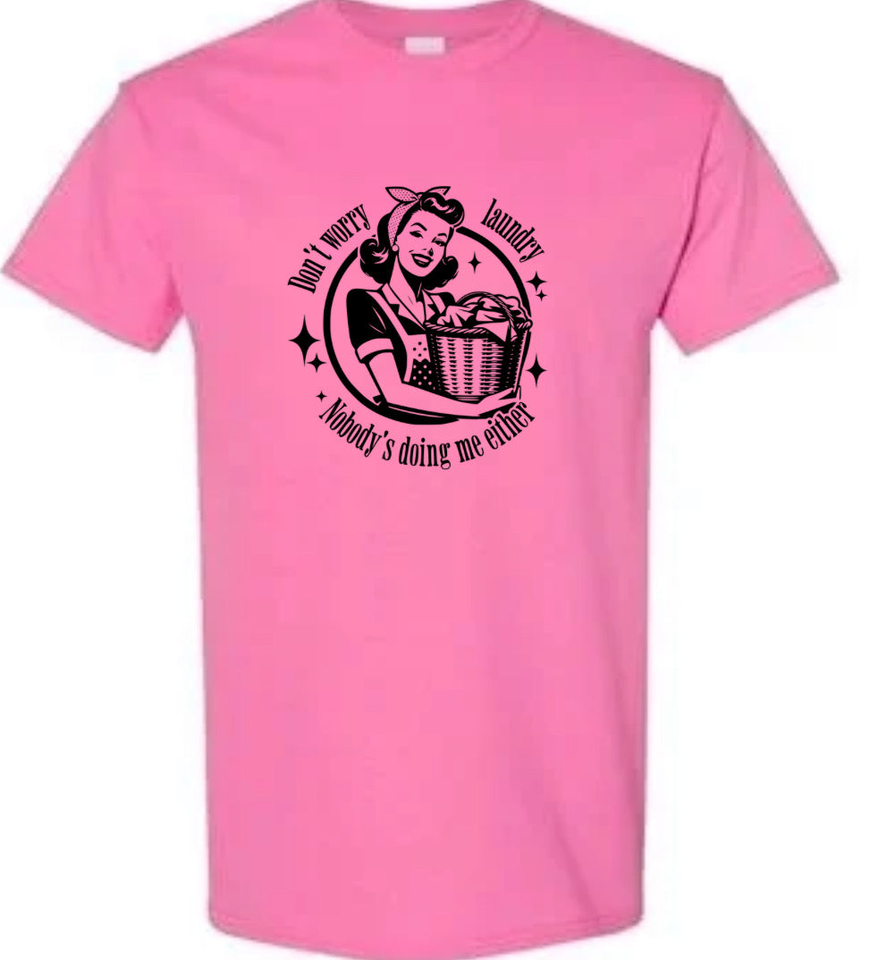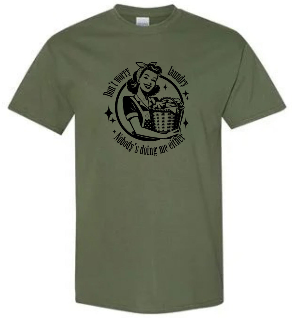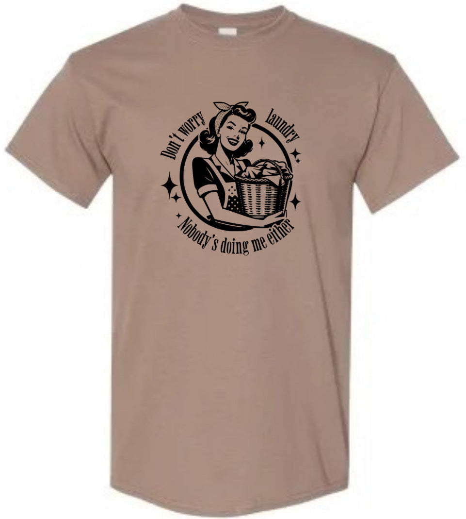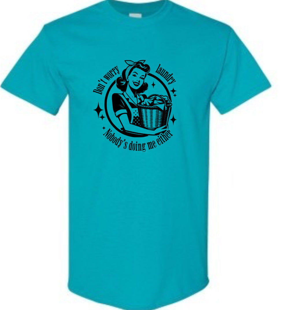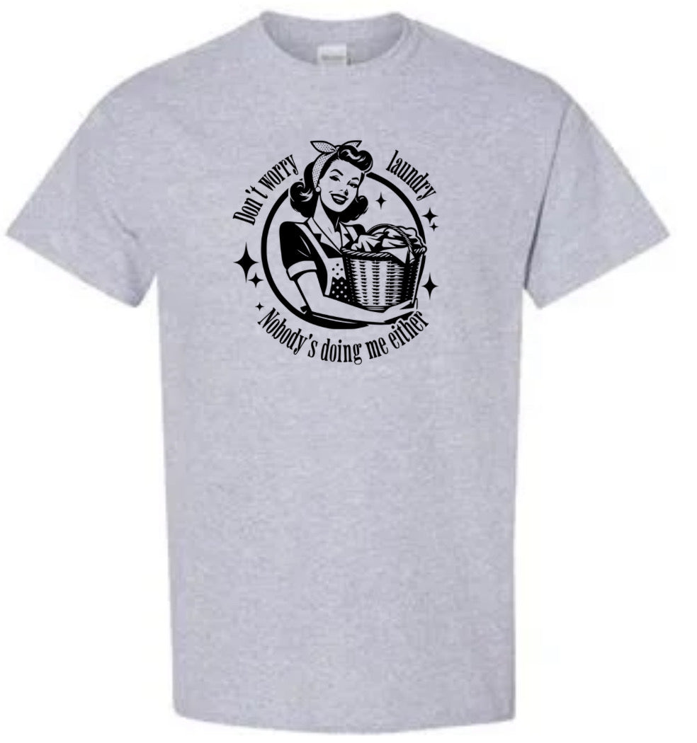Introducing Don't Worry Laundry: the perfect shirt for those who are too busy to do their laundry (or just don't want to!). Show off your sense of humor with this funny shirt while also avoiding the stress of laundry day. Made with high-quality materials for comfort and durability.