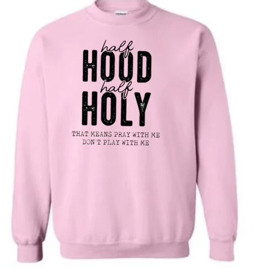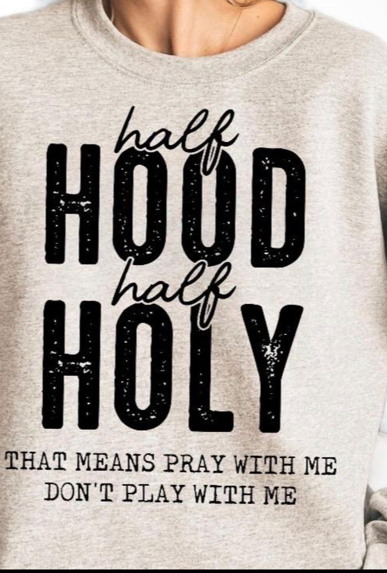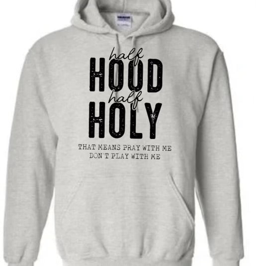 Experience the perfect blend of fashion and faith with our Half Hood Half Holy Sweatshirt. This sweatshirt is designed to keep you cozy and comfortable, while also expressing your commitment to your faith.