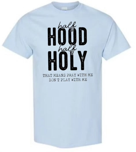 If fashion-forward clothing with an inspiring message speaks to your heart, our Half Hood Half Holy shirt should be at the top of your must-have list! Order yours now!