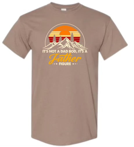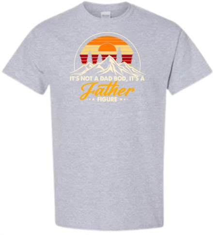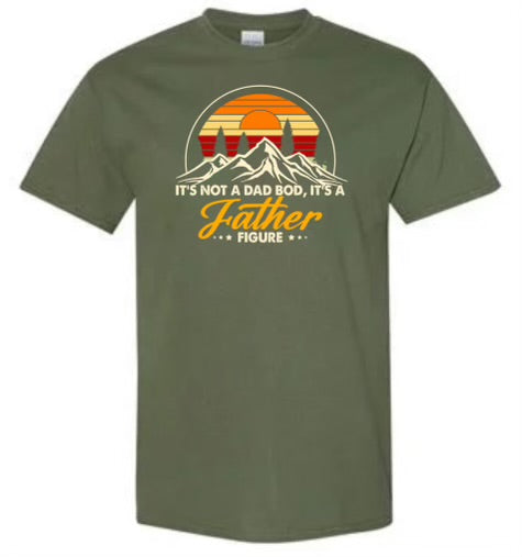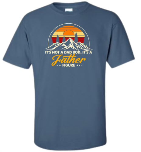 This product is a t-shirt that features a humorous message that reads "It's not a dad bod, it's a father figure". The message is meant to poke fun at the trend of men embracing their "dad bod" as a sign of being comfortable and relaxed. Instead, the product suggests that a man's physique is more accurately described as a "father figure" type of body.
