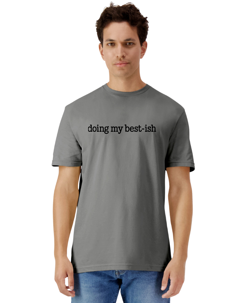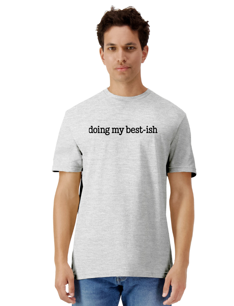 Doing my Best-ish – because perfection is overrated! This tee celebrates the art of showing up and giving it your all, even when "all" looks a little messy. Perfect for anyone who's juggling life's chaos with humor and heart. Soft, comfortable, and honest enough to wear on your best days and your "I'm-just-getting-by" days alike. A wearable reminder that good enough really is good enough.