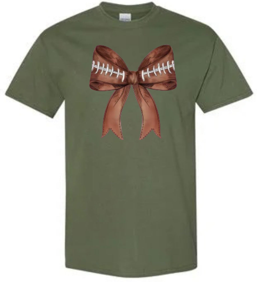 This Football Bow shirt is the perfect addition to any football fan's wardrobe. Made with high-quality materials, it features a stylish bow design that showcases your love for the game. With its comfortable fit and unique style, this shirt is sure to elevate your game day outfits.