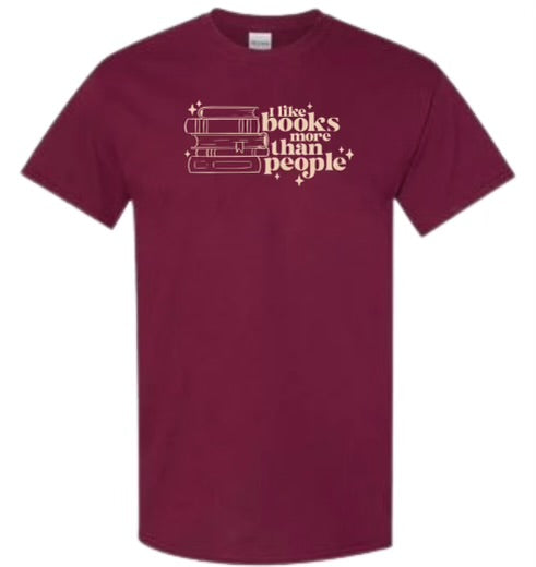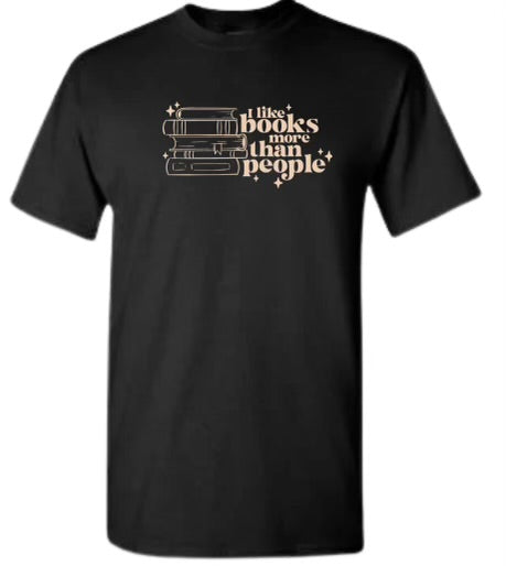 Stay true to yourself with our "I like books more than people" t-shirt. Made with high-quality material, this t-shirt is not just comfortable, but also a statement piece for all book lovers. Embrace your love for literature and express it with pride.