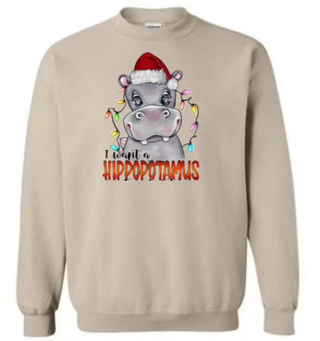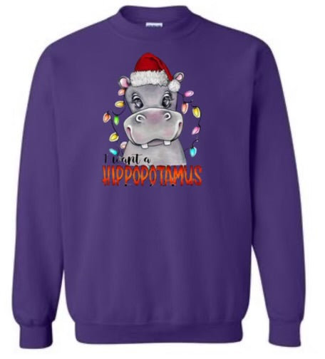 Bring joy to your holiday wardrobe with the "Hippopotamus for Christmas" sweatshirt. Made with high-quality material, this sweatshirt is both comfortable and stylish. Wear it proudly and spread the holiday cheer.