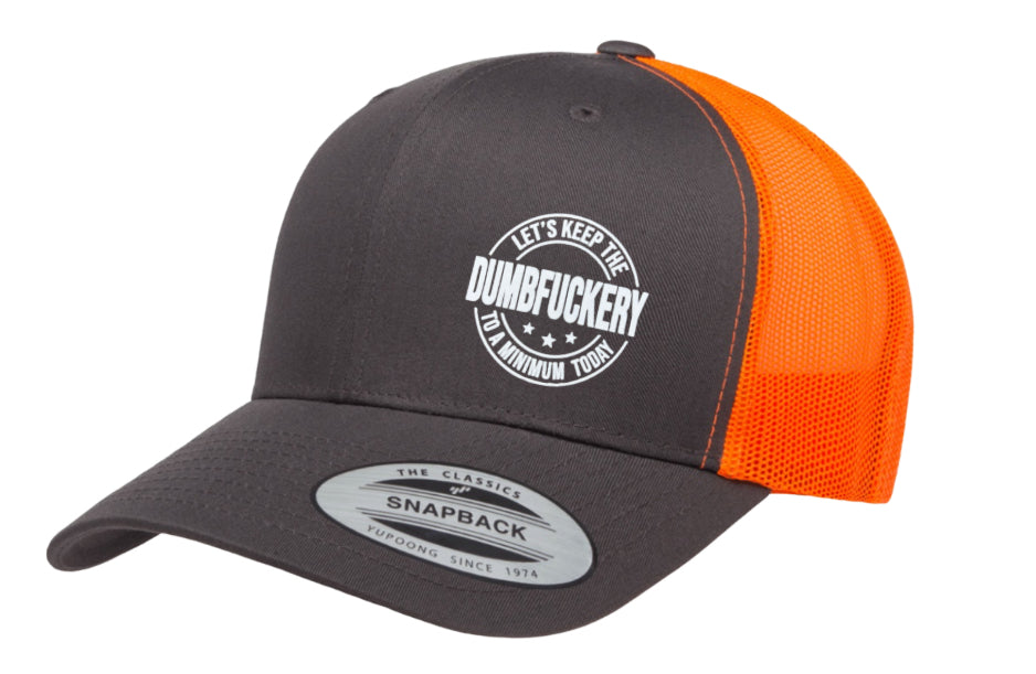 Show your no-nonsense attitude with the "Lets Keep the Dumb F*ckery to a Minimum today" hat. Expertly crafted for comfort and durability, this hat helps you set clear boundaries while keeping your style sharp. Perfect for those who value straightforwardness and want to make a statement without saying a word.