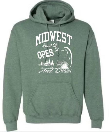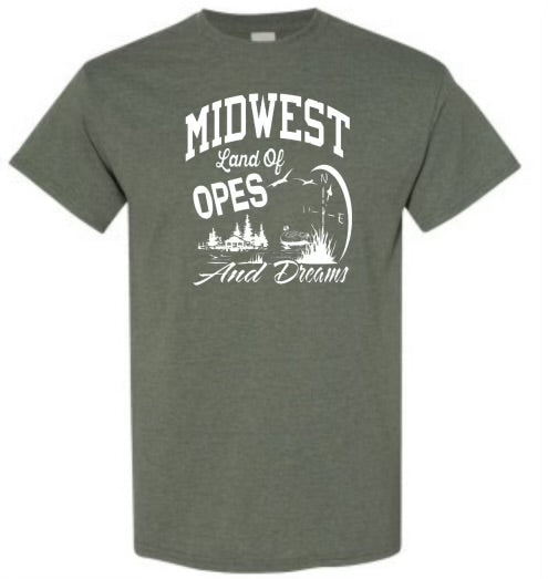 Discover the beauty and charm of the Midwest with our Midwest- Land of Opes and dreams Funny shirt. Perfect for those who love adventure and chasing their dreams. Made with high-quality materials, it's comfortable and durable for all your Midwest explorations. Show off your love for the Midwest with this unique and humorous shirt.