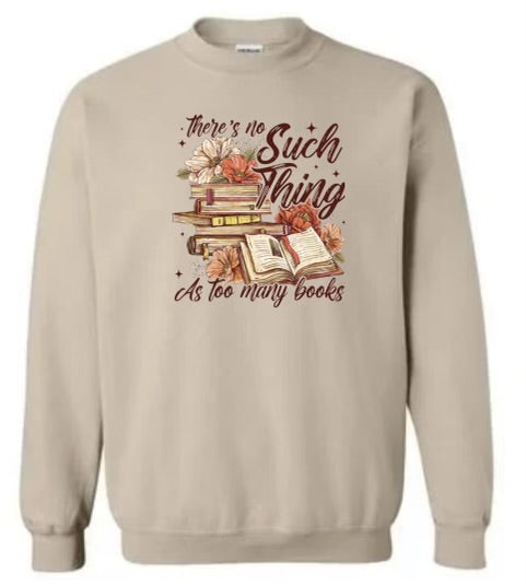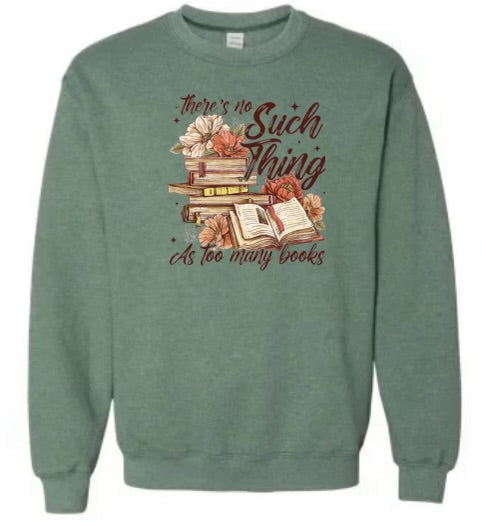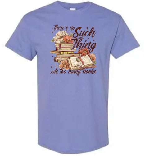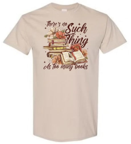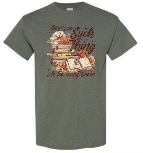 Discover the perfect shirt for book lovers with our "No such thing as too many books" design. Made with high-quality materials, this shirt showcases your love for reading in a subtle and stylish way. Show off your bookworm status and inspire others to indulge in the delightful world of literature. Limited stock available, get yours now.