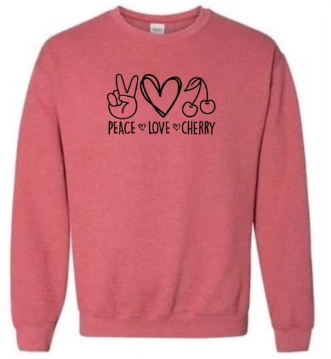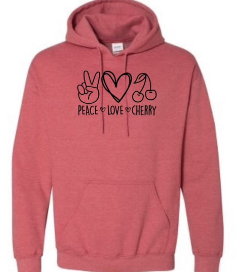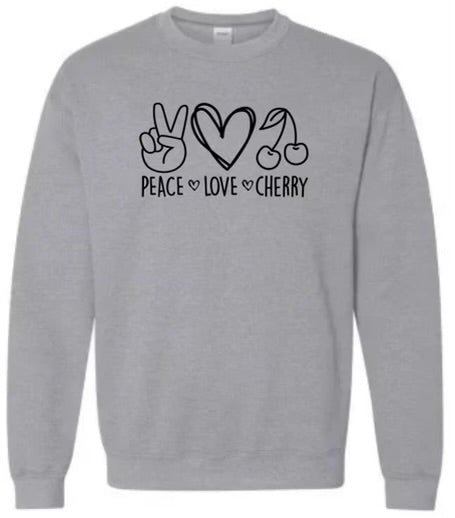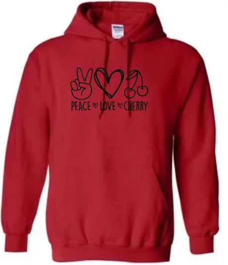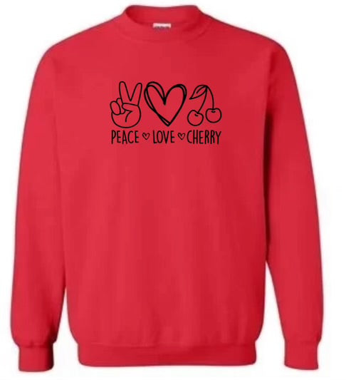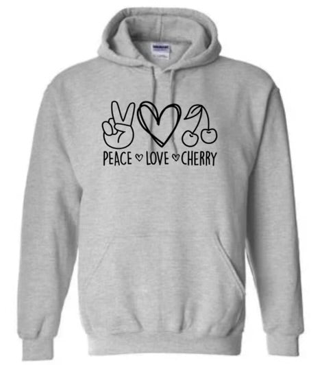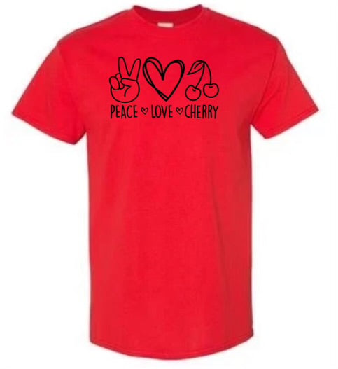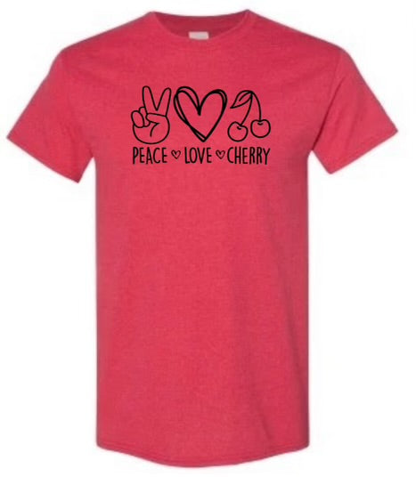 Introducing our Peace Love and Cherries shirt, the perfect addition to your wardrobe. Made with high-quality materials, this shirt features a unique design of peace signs, hearts, and cherries. Show off your love for positivity and cherries with this must-have shirt.
