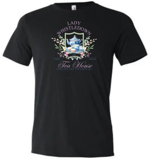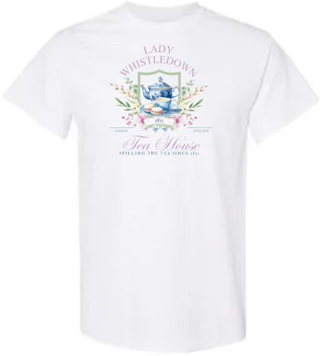 This shirt features Lady Whistleton's tea house, inspired by the popular television series Bridgerton. Made for tea lovers, this shirt is a stylish and unique way to show your appreciation for the show. Made with quality materials, it is comfortable and perfect for everyday wear.
