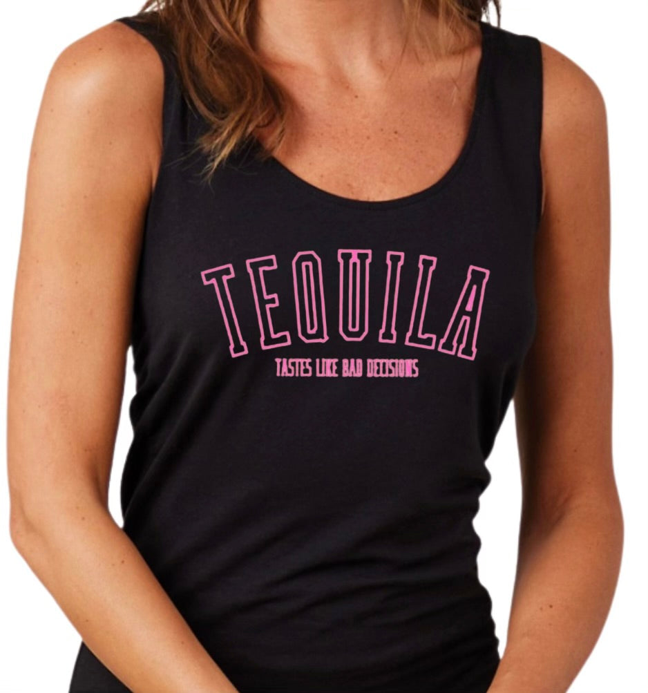 The name says it all: Tequila taste like bad decisions. Whether you're sipping on cocktails with friends or dancing all night long, this tank top will let everyone know that you're not afraid to take risks and live life on your terms.