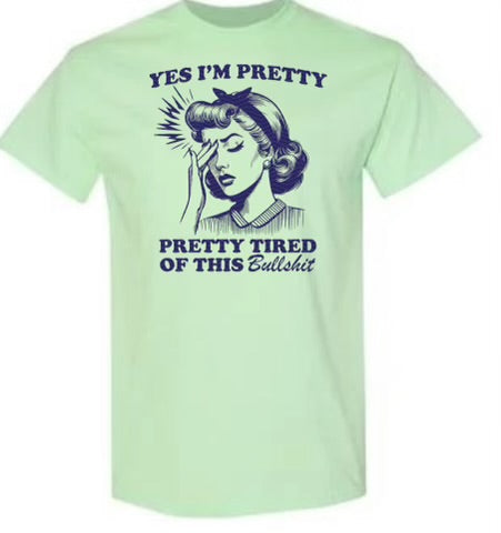 Introducing the "Yeah I'm pretty pretty tired shirt", a comfortable and stylish option for those who need a break from their busy lives. This shirt is perfect for those who want to express their feelings of exhaustion in a humorous way.